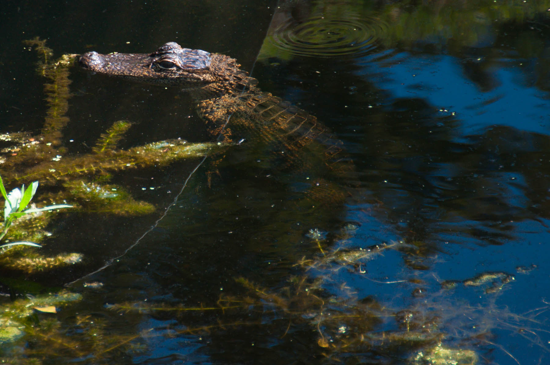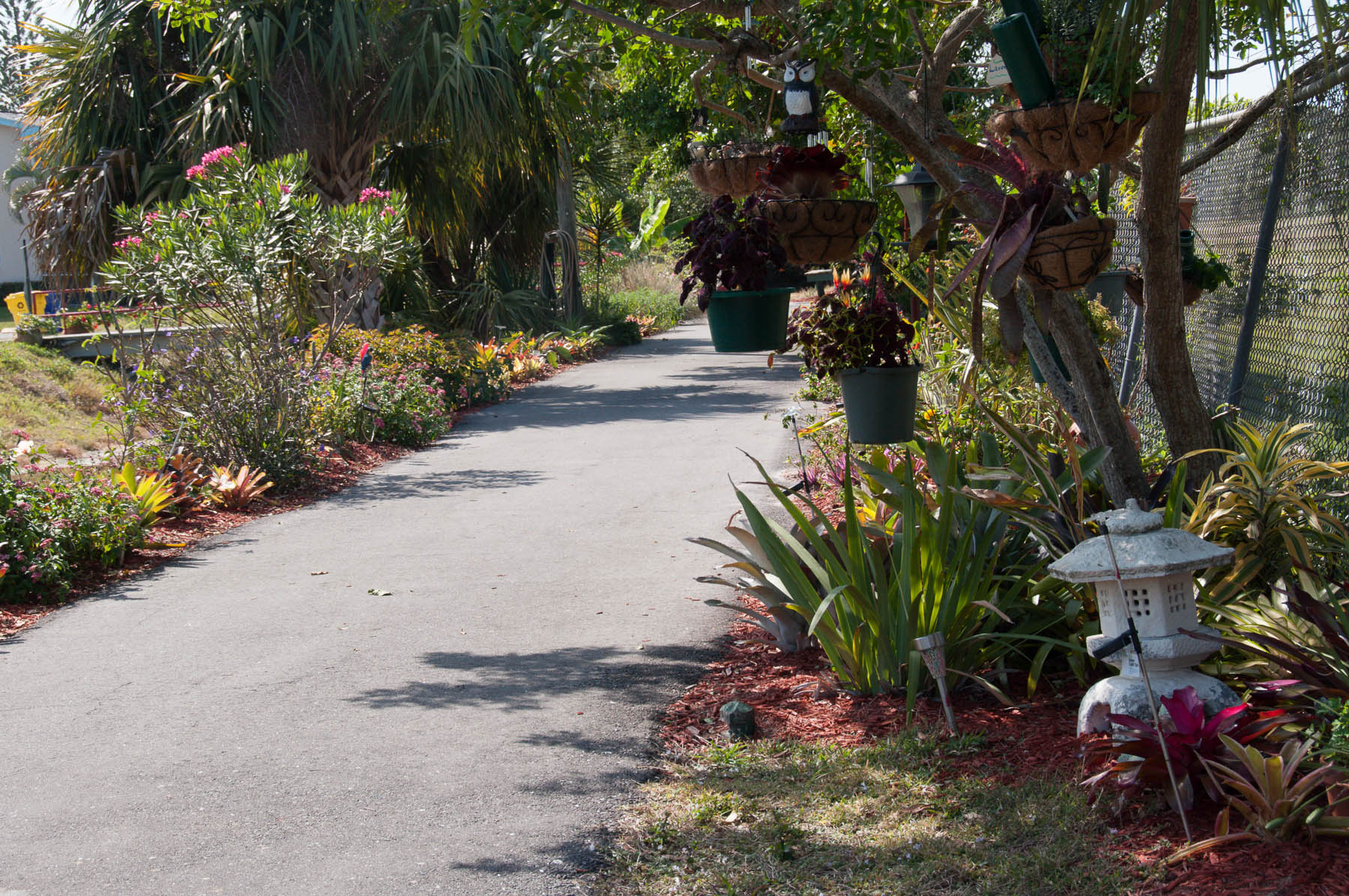 Au « Jardin secret » Un petit sentier, un petit pont, des voisins qui aiment les plantes. Un ruisseau, un lac, des tortues, des tilapias, un juvénile aligator.